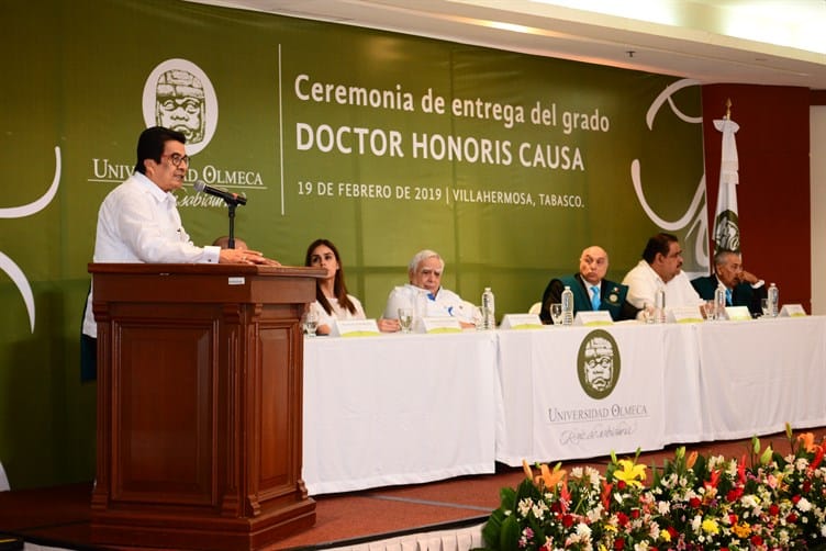 La Universidad Olmeca (UO) entregó el distintivo Honoris Causa al Doctor español Luis